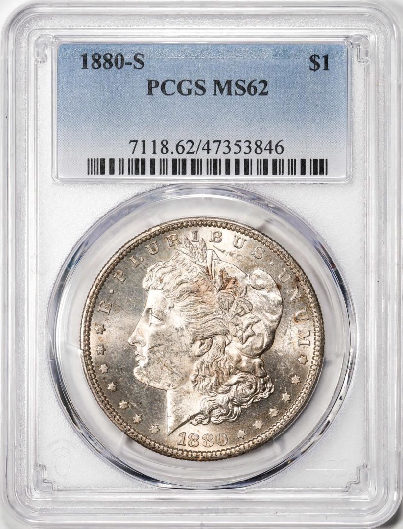 One 1880-S $1 Morgan Silver Dollar Coin PCGS MS62. PCGS Graded.