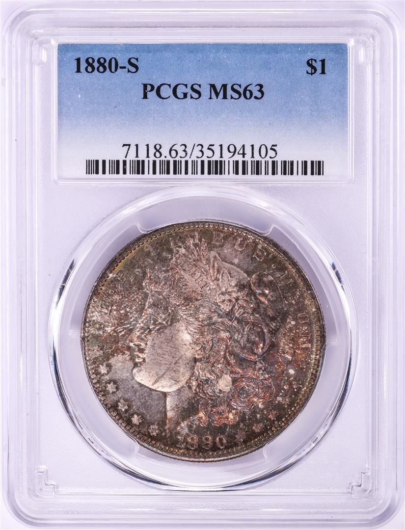 One 1880-S $1 Morgan Silver Dollar Coin PCGS MS63 Nice Toning.