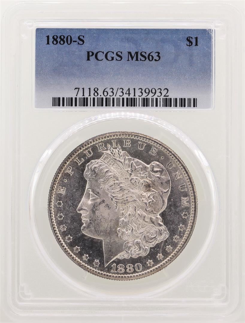 One 1880-S $1 Morgan Silver Dollar Coin PCGS MS63. PCGS Graded.