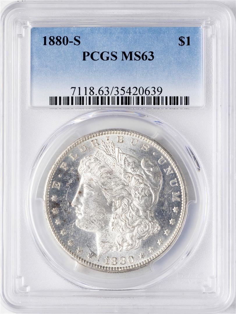 One 1880-S $1 Morgan Silver Dollar Coin PCGS MS63. PCGS Graded.