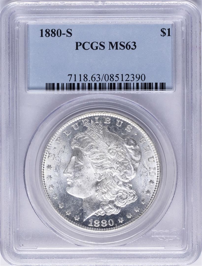 One 1880-S $1 Morgan Silver Dollar Coin PCGS MS63. PCGS Graded.