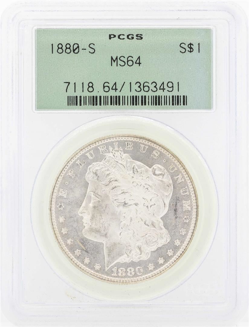 One 1880-S $1 Morgan Silver Dollar Coin PCGS MS64. PCGS Graded.