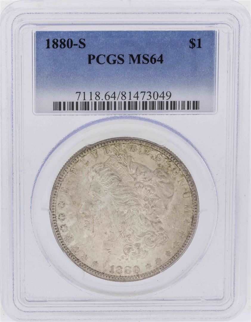 One 1880-S $1 Morgan Silver Dollar Coin PCGS MS64. PCGS Graded.