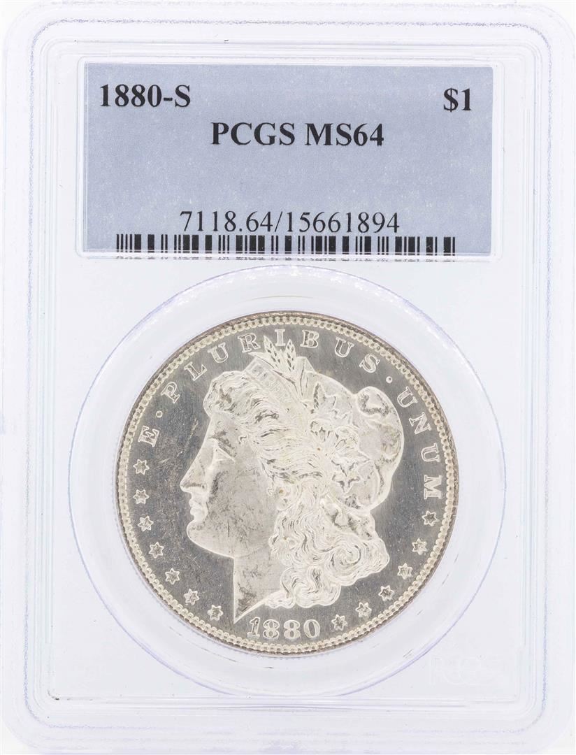 One 1880-S $1 Morgan Silver Dollar Coin PCGS MS64. PCGS Graded.