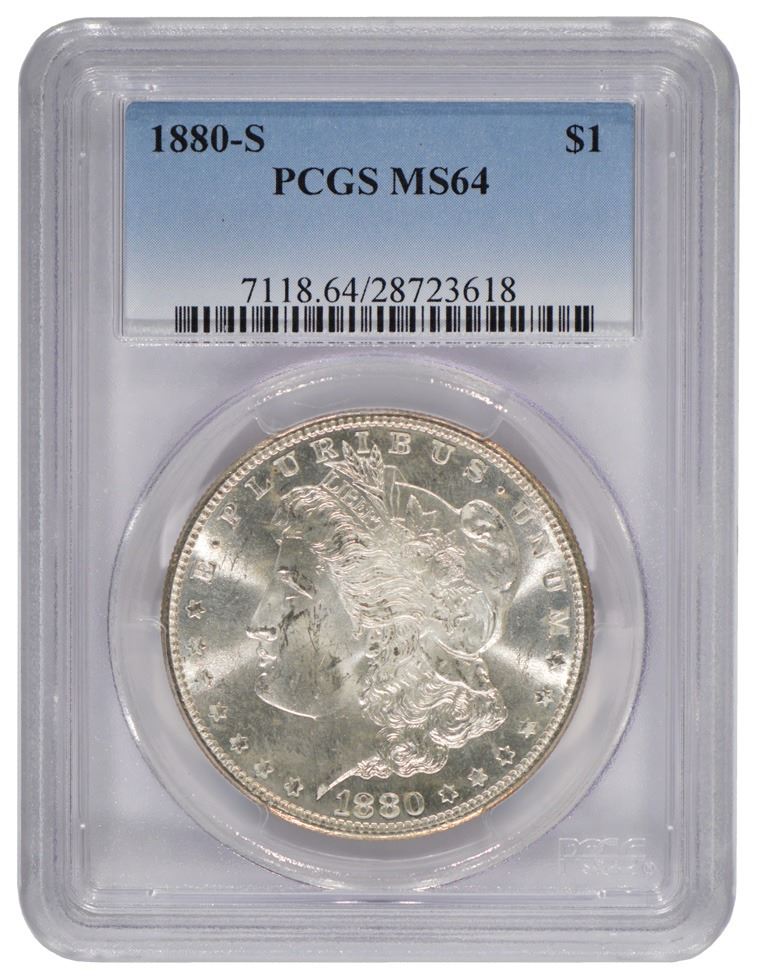 One 1880-S $1 Morgan Silver Dollar Coin PCGS MS64.