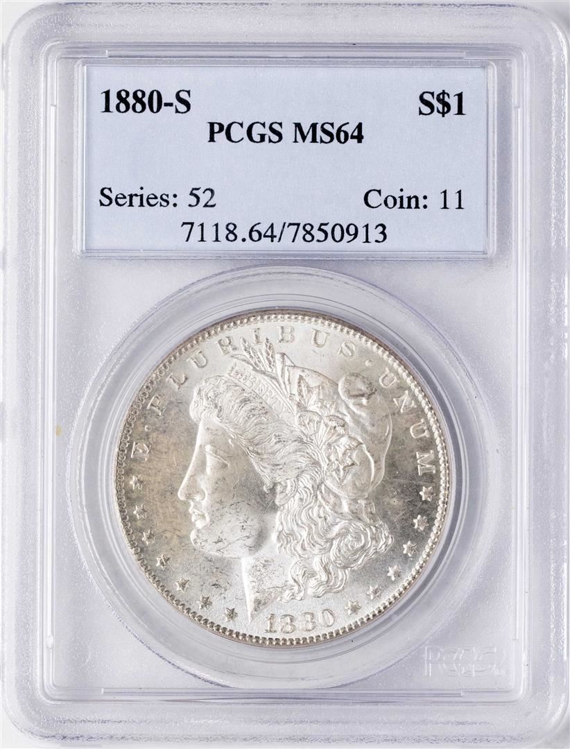 One 1880-S $1 Morgan Silver Dollar Coin PCGS MS64. PCGS Graded.