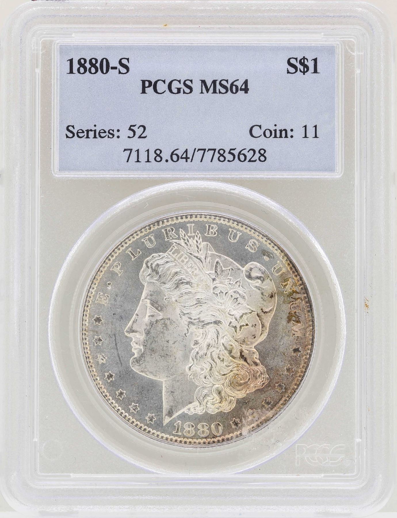 One 1880-S $1 Morgan Silver Dollar Coin PCGS MS64.