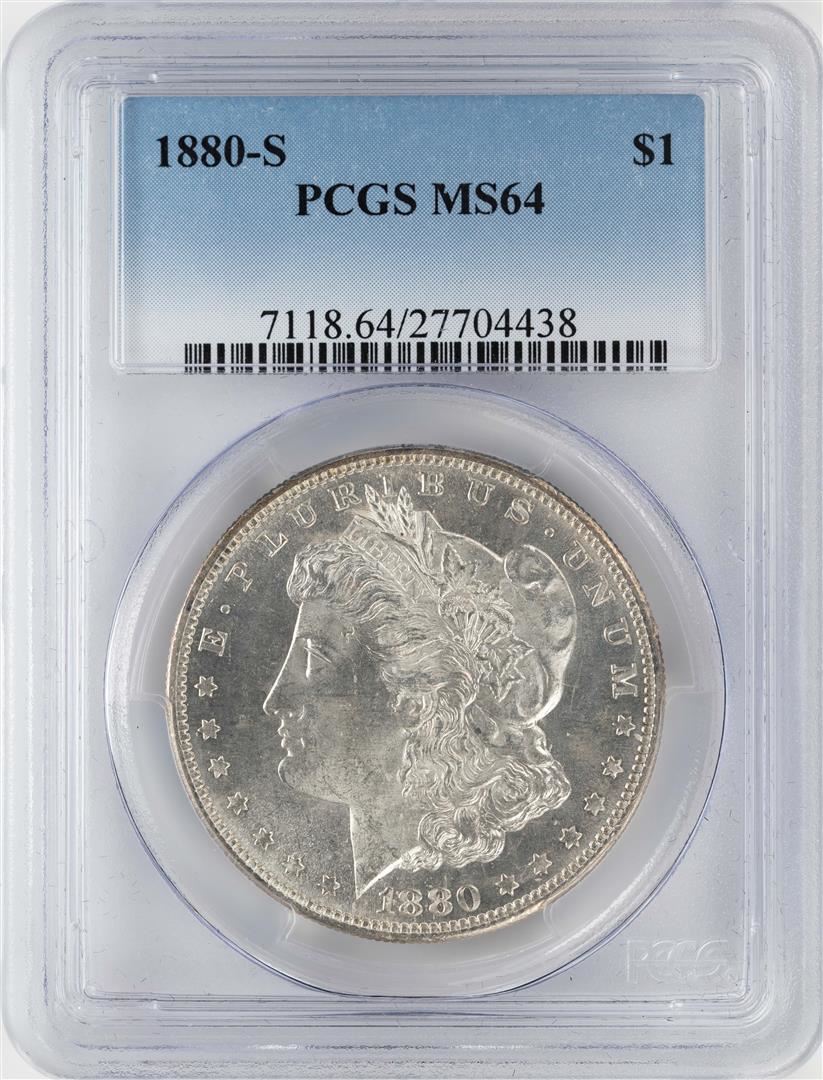 One 1880-S $1 Morgan Silver Dollar Coin PCGS MS64. PCGS Graded.