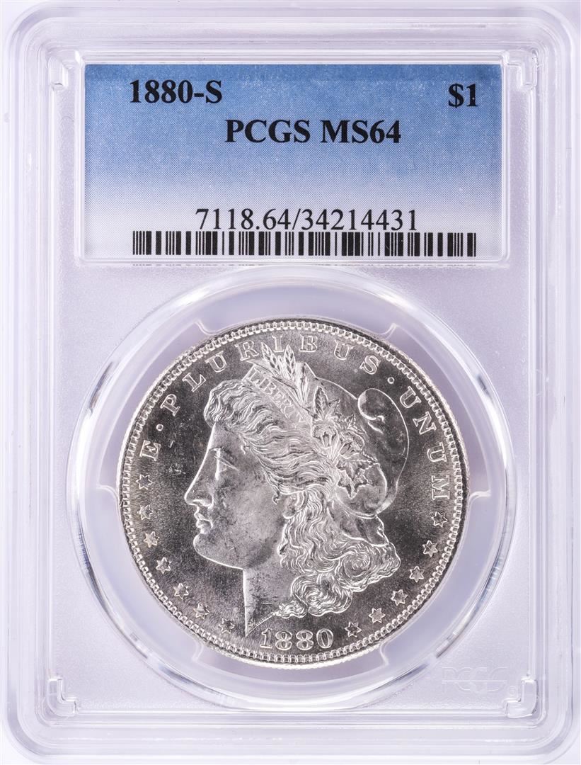 One 1880-S $1 Morgan Silver Dollar Coin PCGS MS64. PCGS Graded.