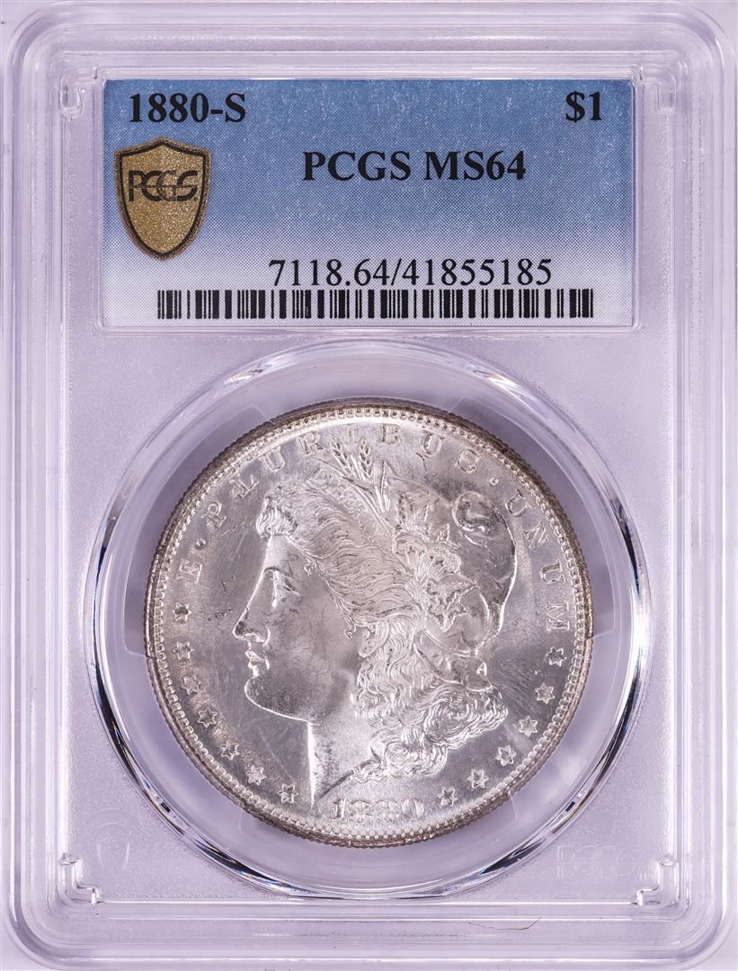 One 1880-S $1 Morgan Silver Dollar Coin PCGS MS64. PCGS Graded.
