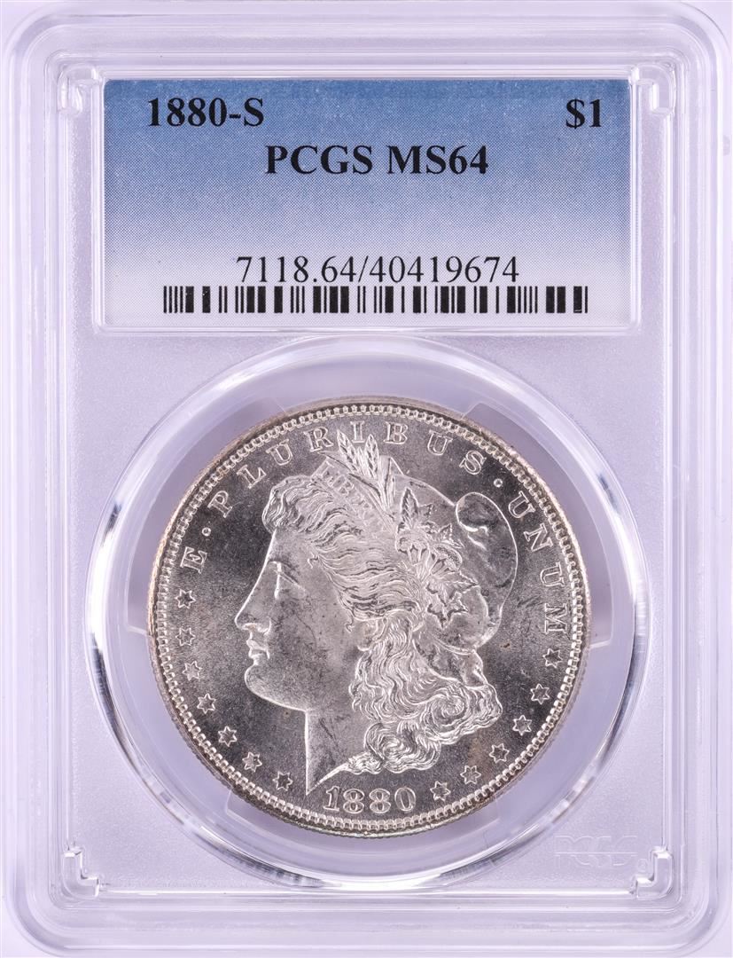One 1880-S $1 Morgan Silver Dollar Coin PCGS MS64. PCGS Graded.