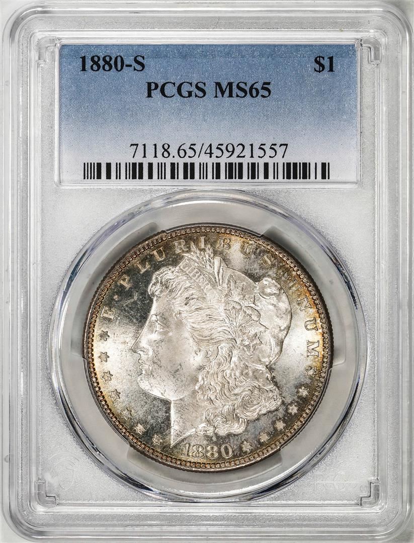 One 1880-S $1 Morgan Silver Dollar Coin PCGS MS65 Amazing Toning. PCGS Graded.
