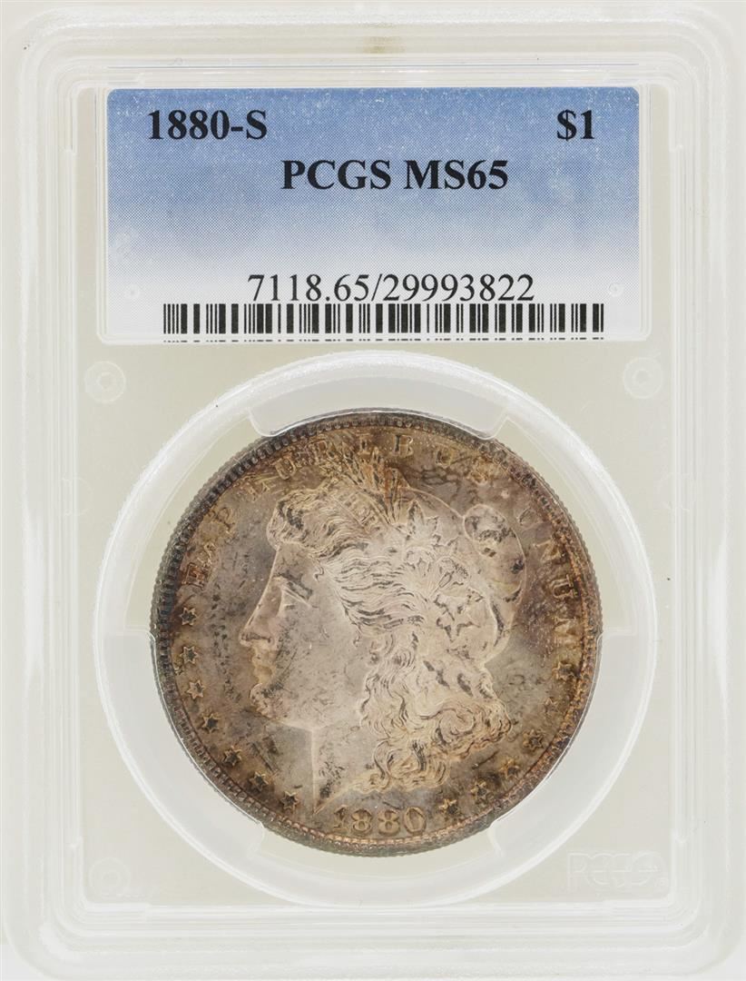 One 1880-S $1 Morgan Silver Dollar Coin PCGS MS65 Nice Toning. PCGS Certified.