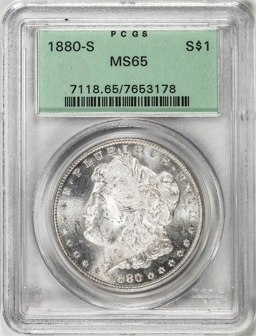 One 1880-S $1 Morgan Silver Dollar Coin PCGS MS65 Old Green Label. PCGS Graded.