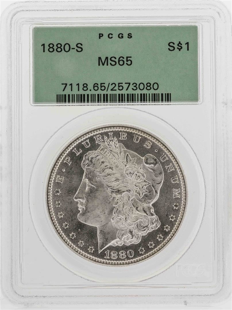 One 1880-S $1 Morgan Silver Dollar Coin PCGS MS65. PCGS Graded.