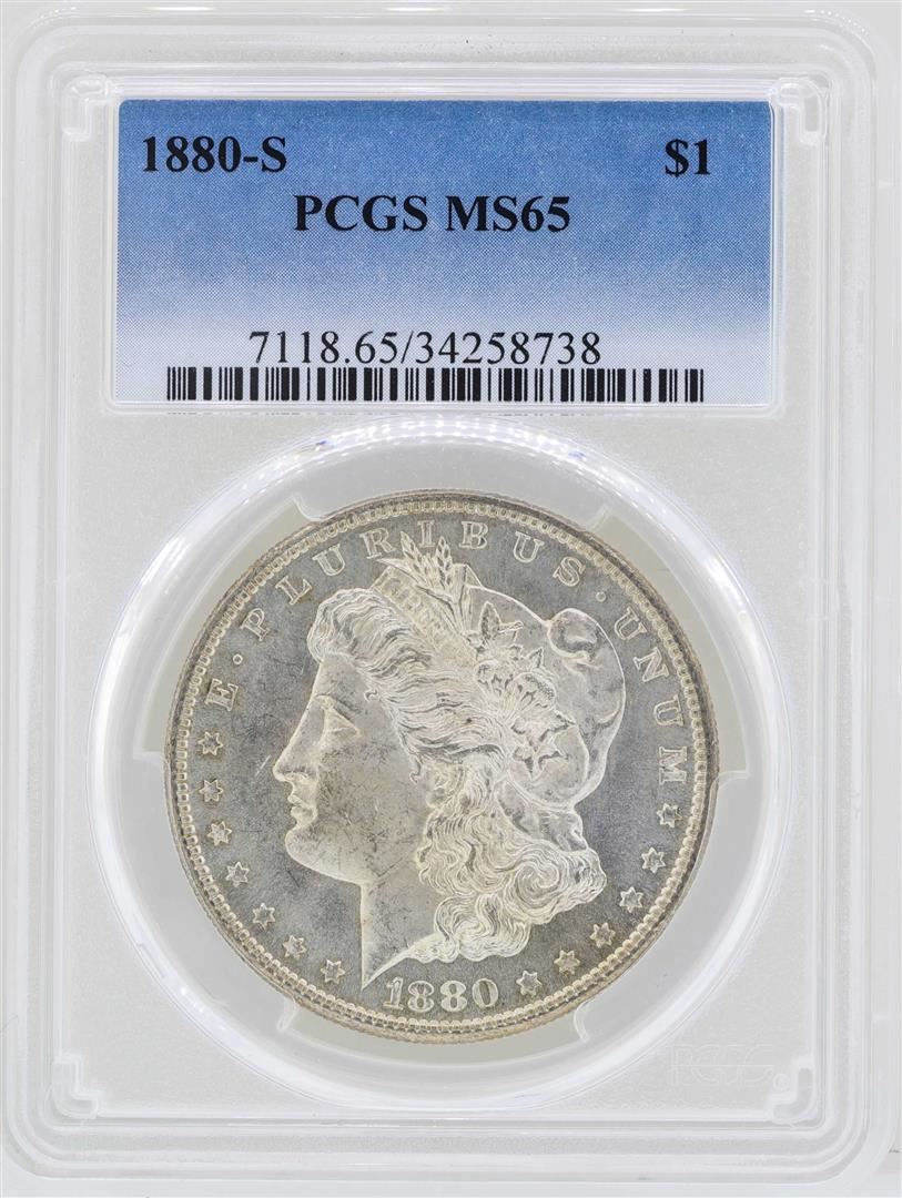 One 1880-S $1 Morgan Silver Dollar Coin PCGS MS65. PCGS Graded.
