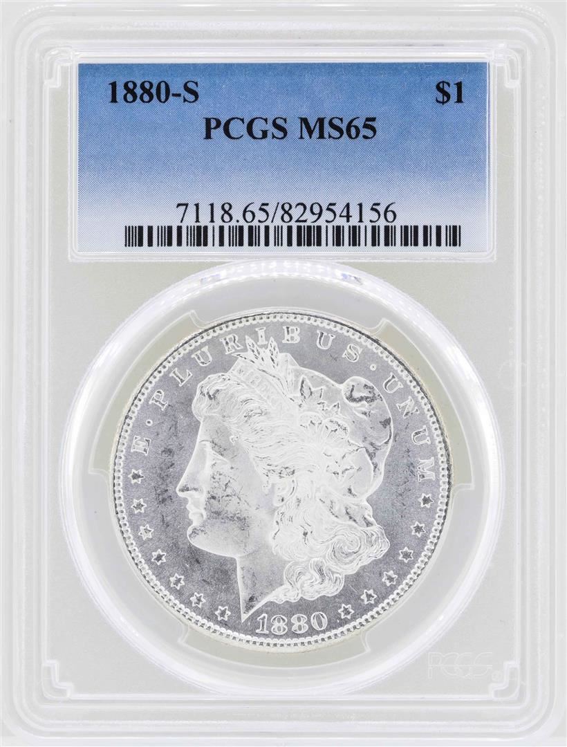 One 1880-S $1 Morgan Silver Dollar Coin PCGS MS65. PCGS Graded.