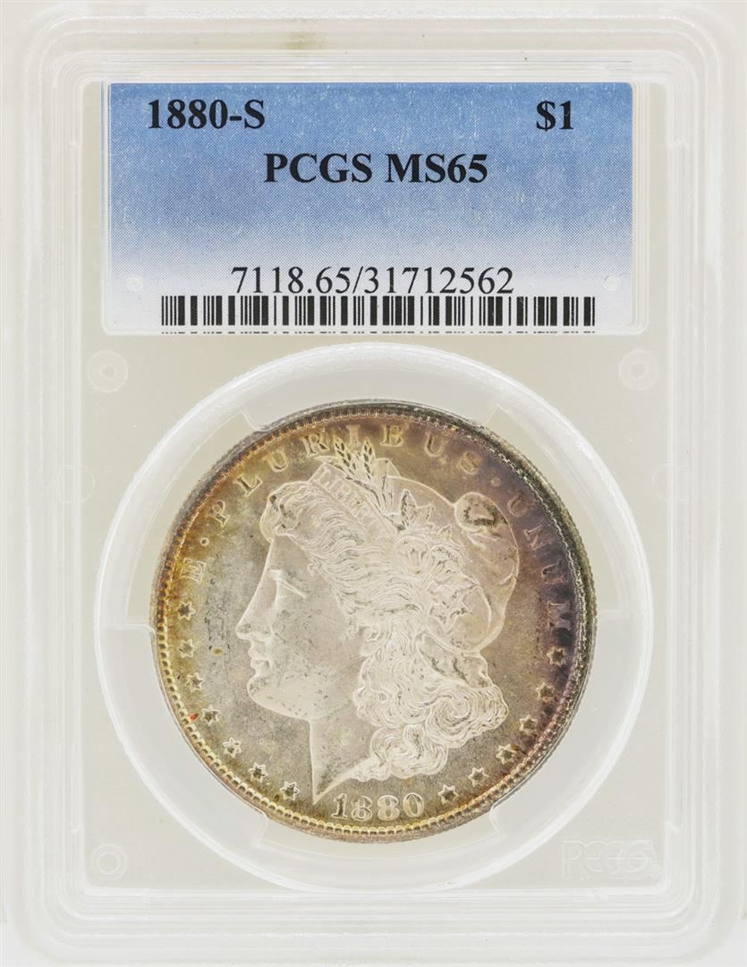One 1880-S $1 Morgan Silver Dollar Coin PCGS MS65. PCGS Certified.