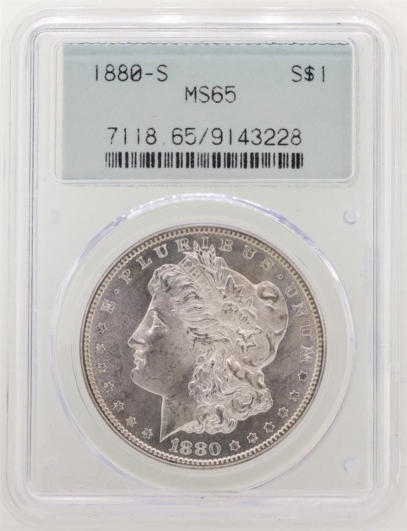 One 1880-S $1 Morgan Silver Dollar Coin PCGS MS65. PCGS Graded.