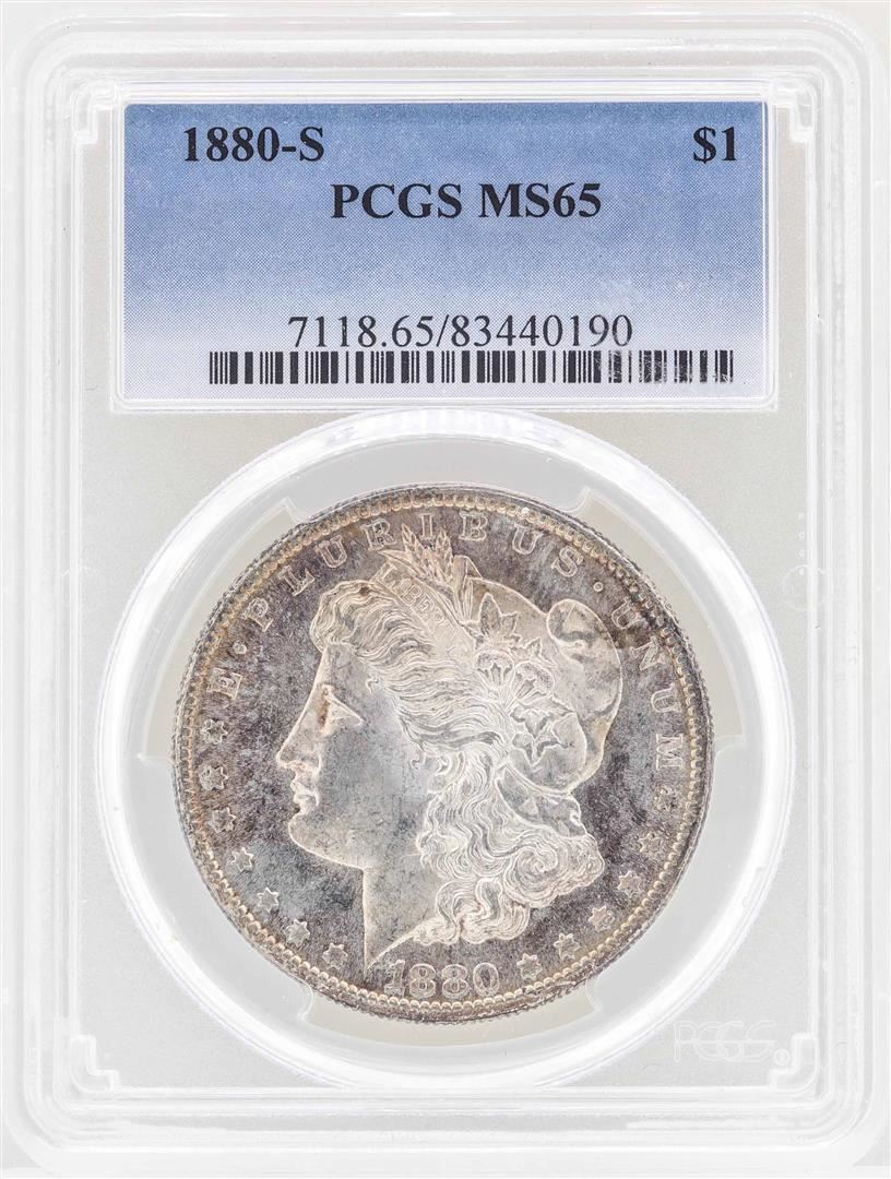 One 1880-S $1 Morgan Silver Dollar Coin PCGS MS65. PCGS Graded.