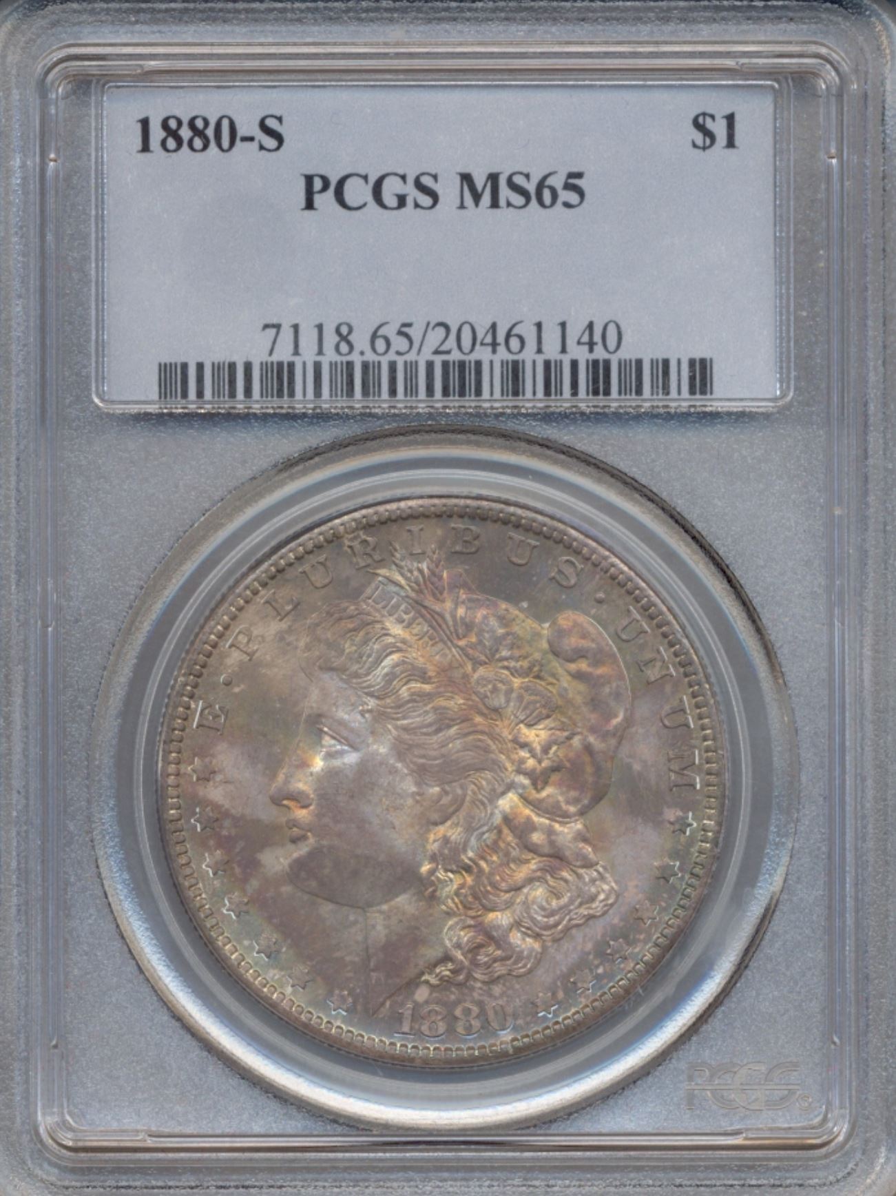 One 1880-S $1 Morgan Silver Dollar Coin PCGS MS65.