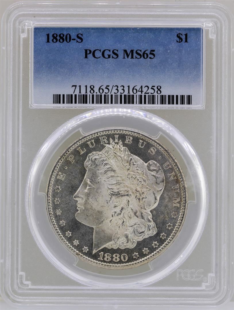 One 1880-S $1 Morgan Silver Dollar Coin PCGS MS65. PCGS Graded.