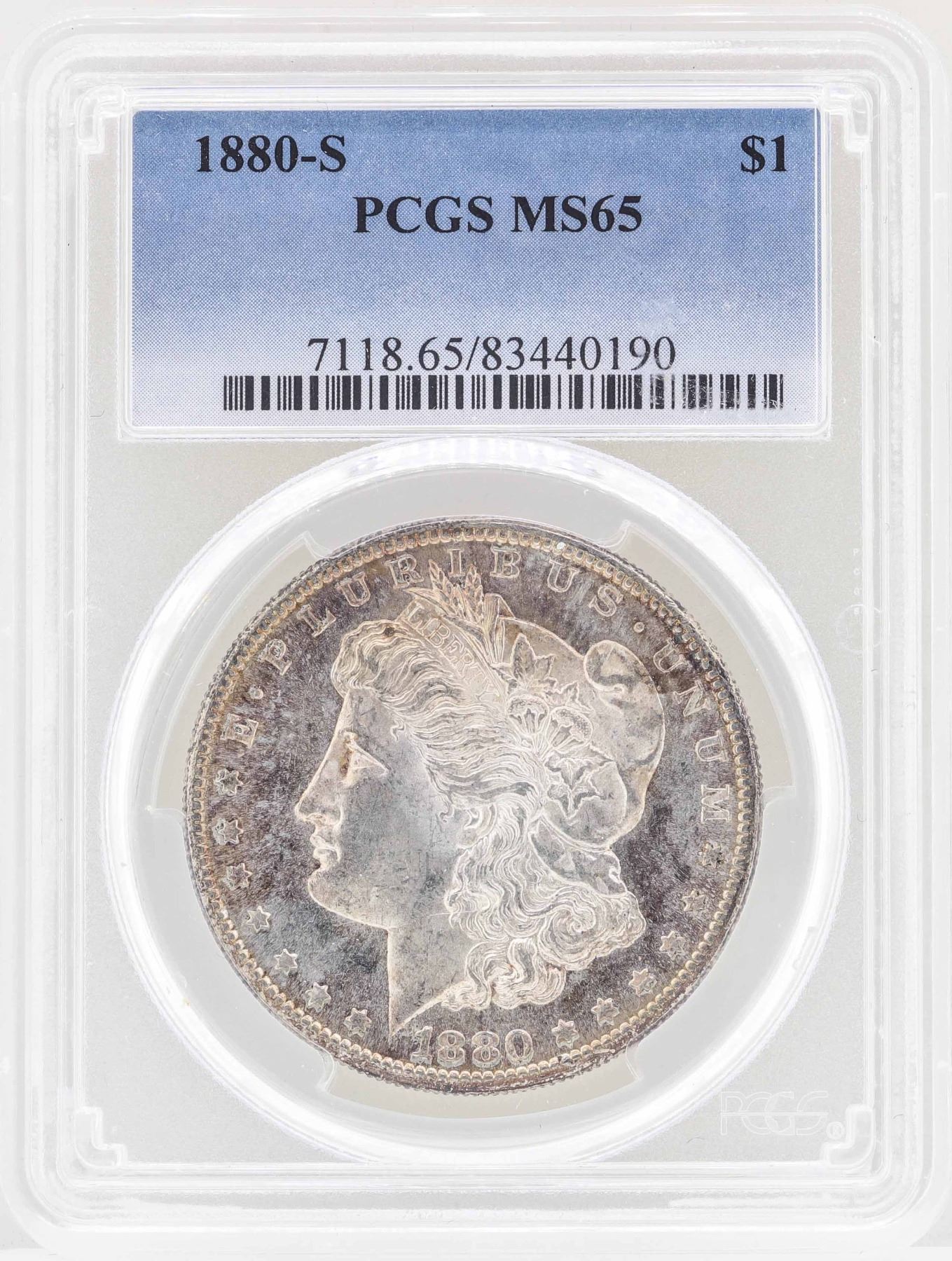 One 1880-S $1 Morgan Silver Dollar Coin PCGS MS65.