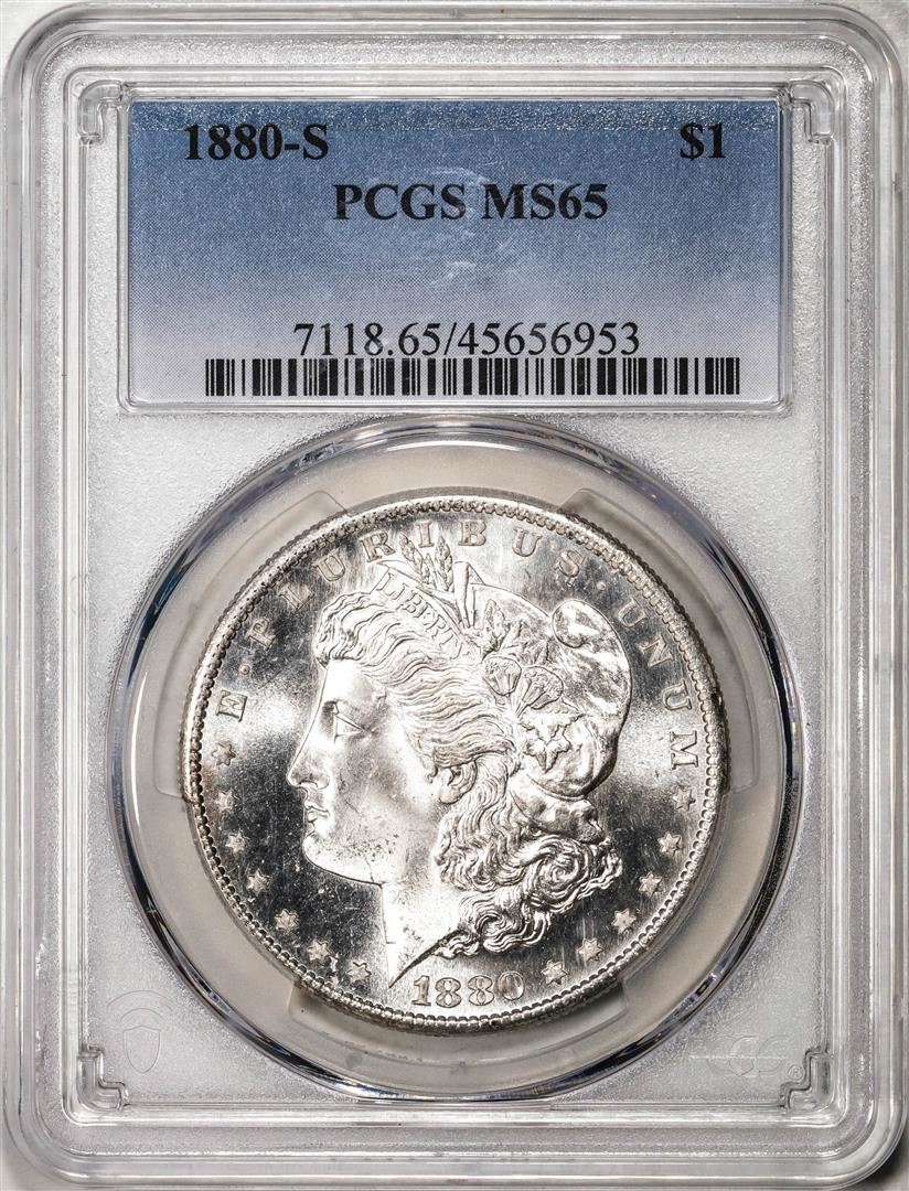 One 1880-S $1 Morgan Silver Dollar Coin PCGS MS65. PCGS Graded.