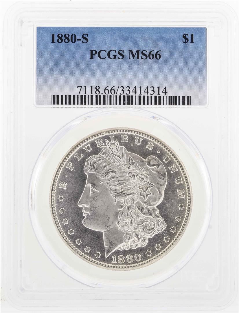 One 1880-S $1 Morgan Silver Dollar Coin PCGS MS66. PCGS Graded.