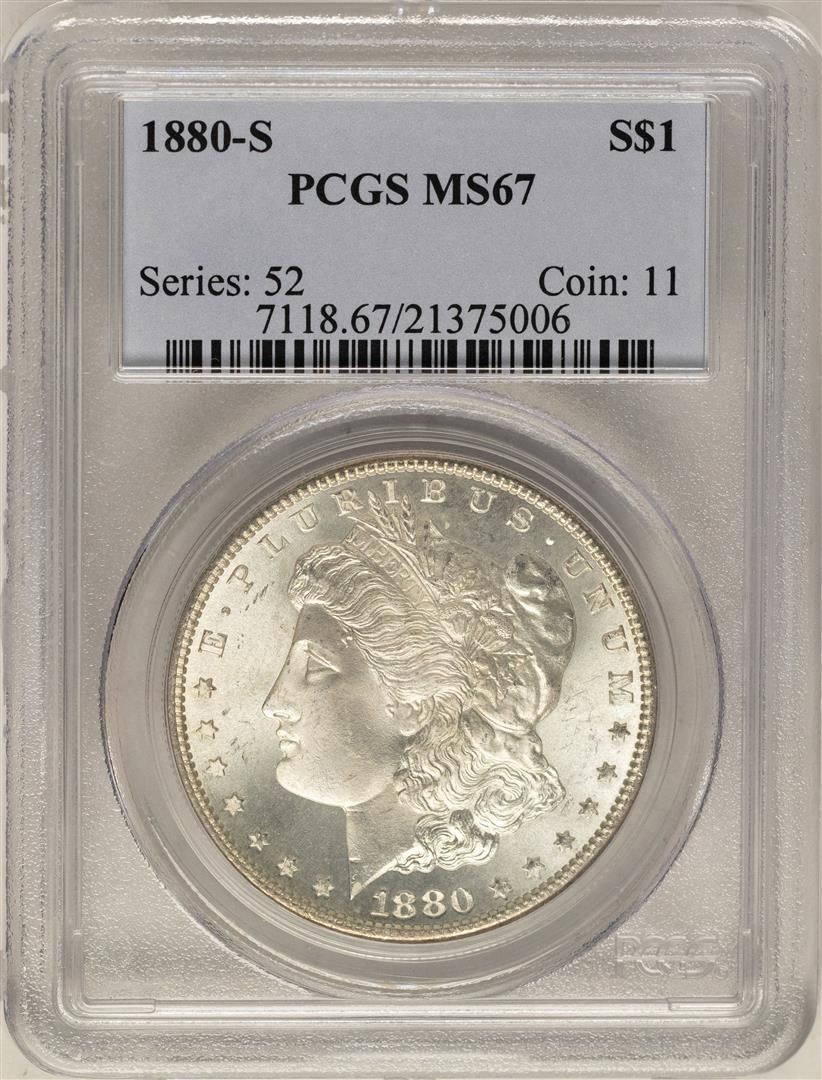 One 1880-S $1 Morgan Silver Dollar Coin PCGS MS67. PCGS Graded.