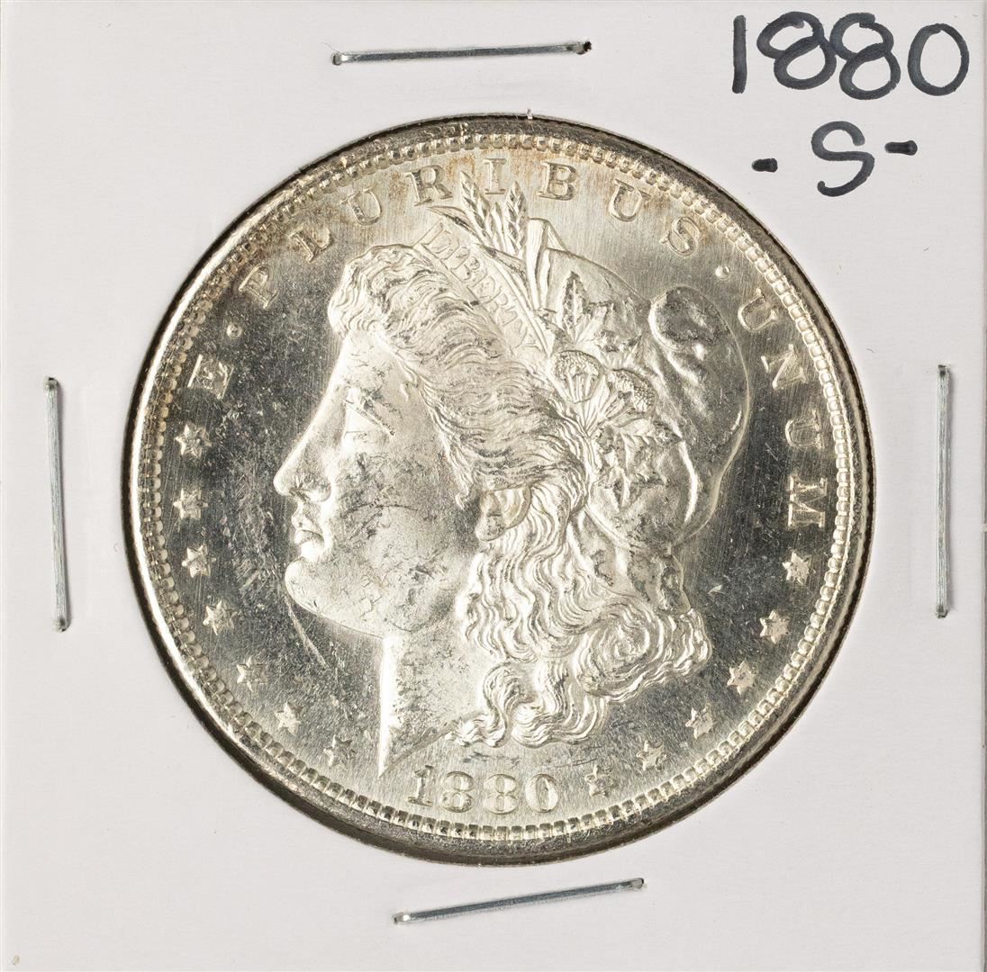 One 1880-S $1 Morgan Silver Dollar Coin.