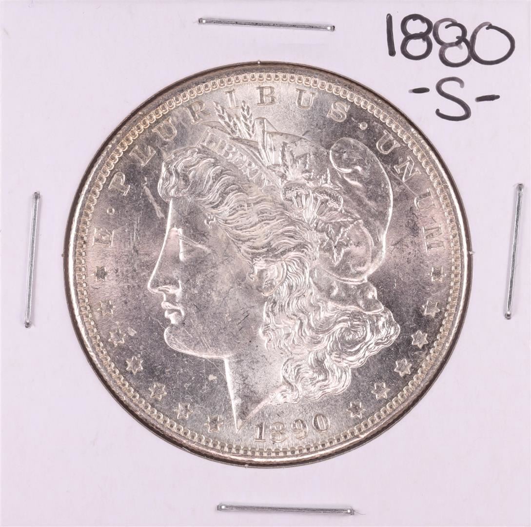 One 1880-S $1 Morgan Silver Dollar Coin.