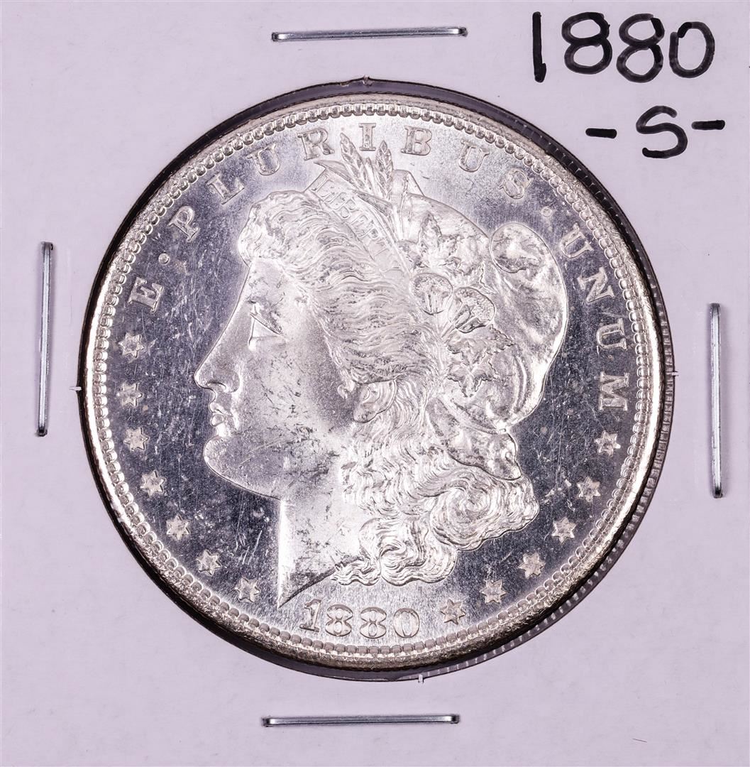 One 1880-S $1 Morgan Silver Dollar Coin.