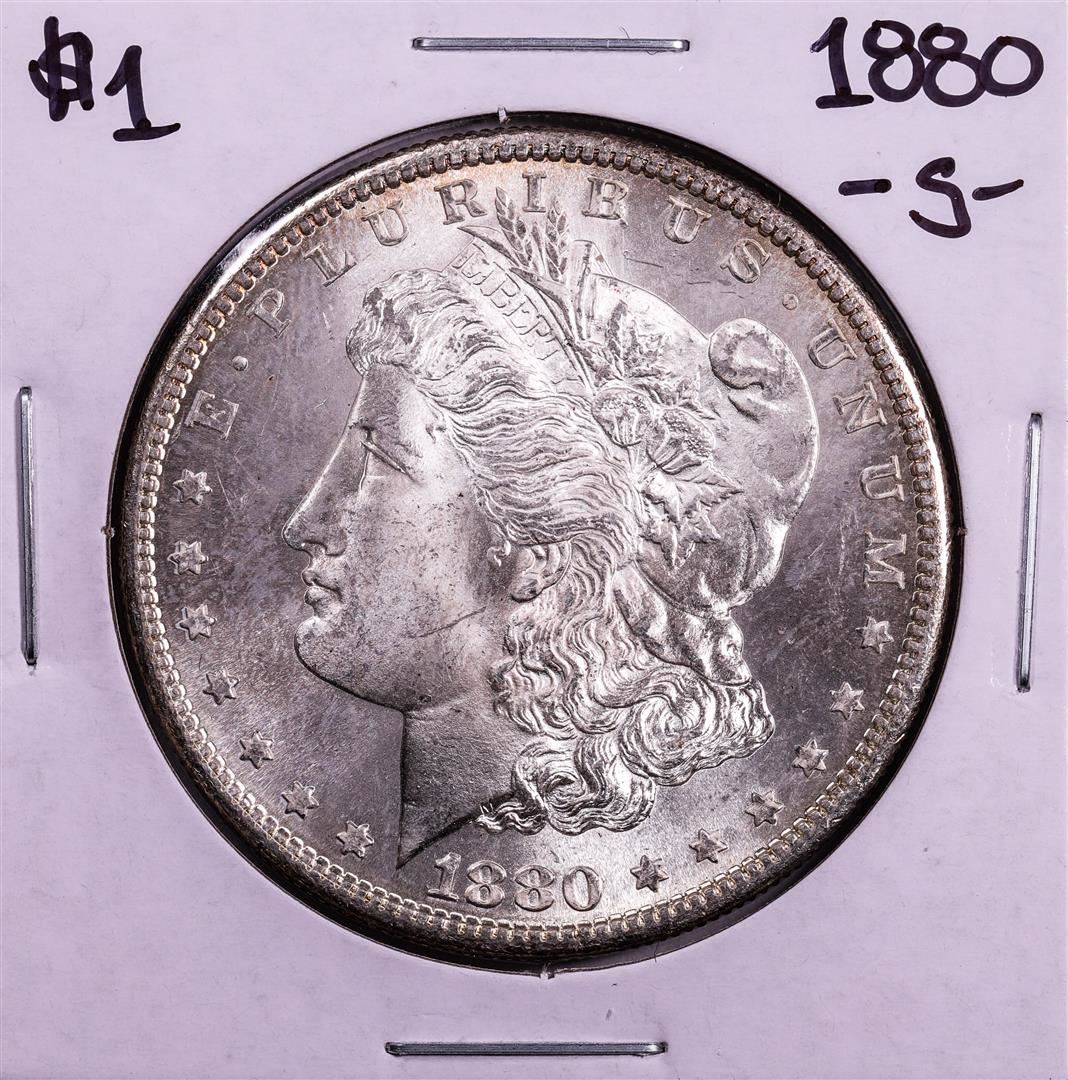 One 1880-S $1 Morgan Silver Dollar Coin.