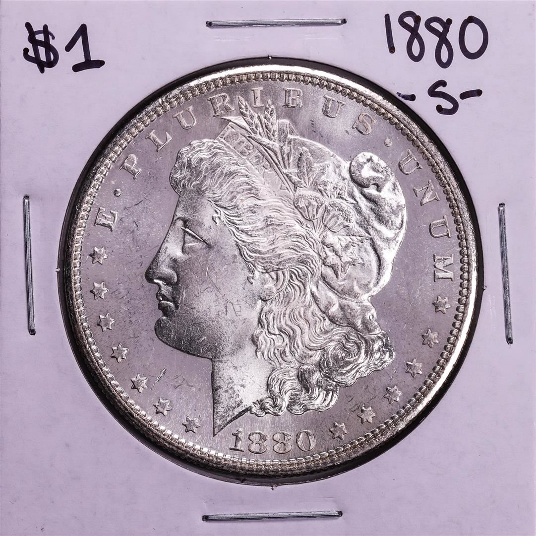 One 1880-S $1 Morgan Silver Dollar Coin.