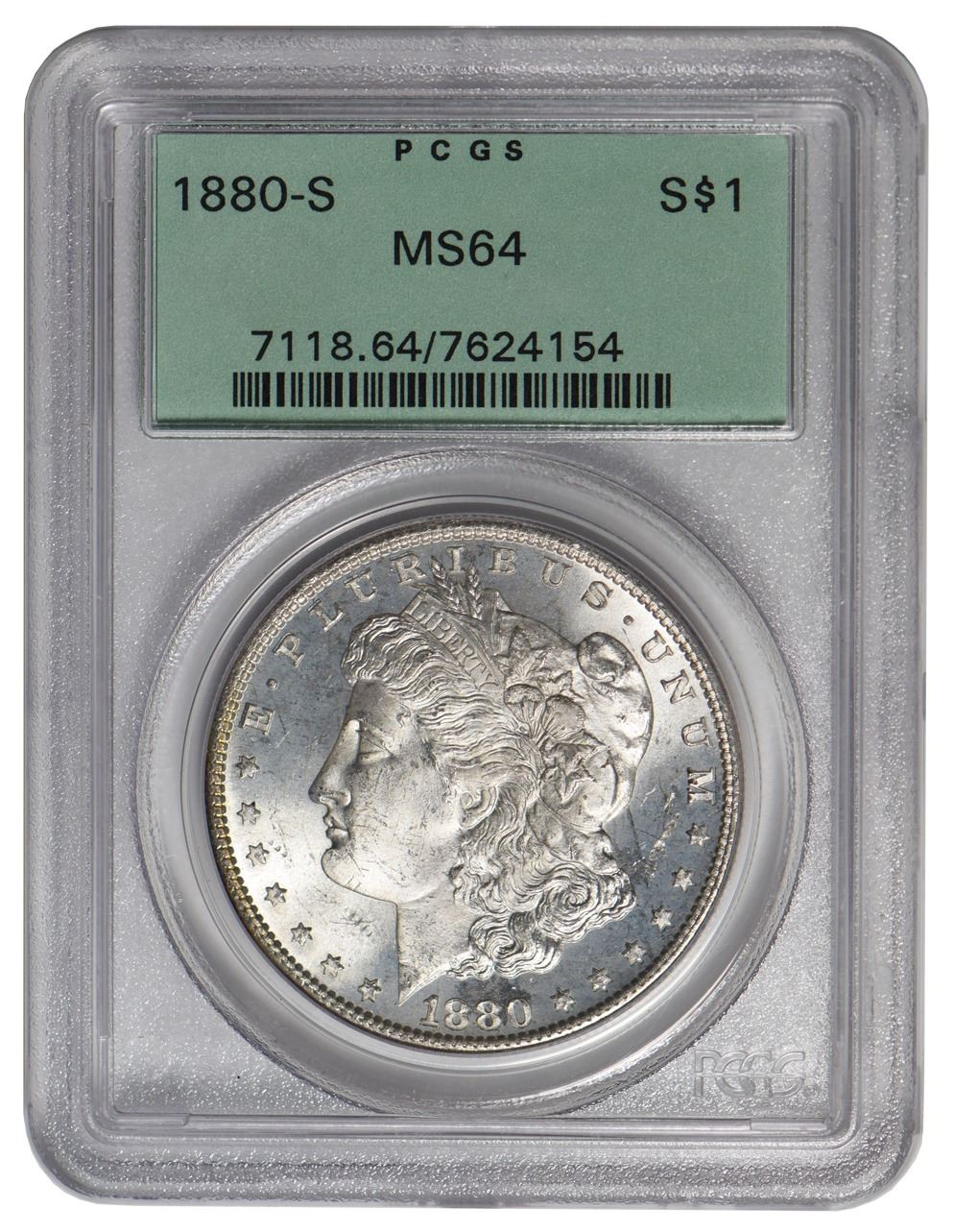 One 1880-S $1 Morgan Silver Dollar PCGS MS64.