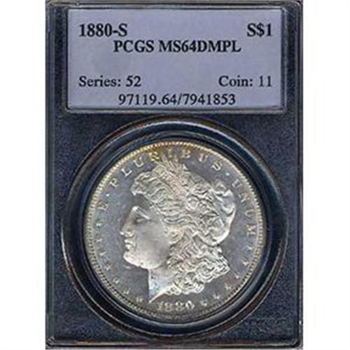 Full two tone cameo contrast between frosted devices and well preserved mirror field. A light dusting of brownish gold color in areas. Otherwise bright and glittery.