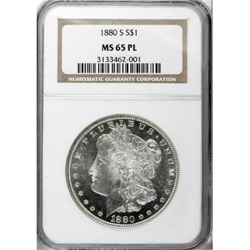 <B>1880-S $1 MS65 Prooflike NGC.</B></I> NGC Census: (1823/857). PCGS Population (2370/778). Numismedia Wsl. Price for NGC/PCGS coin in MS65: $210. (#7119)<BR><BR><B>Coin Engraver:</B> George T. Morgan<BR><BR><b>Shipping:</b> Coins & Currency (<a target="_blank" href="http://www.heritageauctions.com/common/shipping.php">view shipping information</a>)