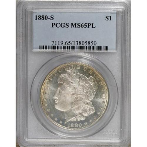 <B>1880-S $1 MS65 Prooflike PCGS.</B></I> PCGS Population (2363/774). NGC Census: (1803/843). Numismedia Wsl. Price for NGC/PCGS coin in MS65: $200. (#7119)<BR><BR><B>Coin Engraver:</B> George T. Morgan<BR><BR><b>Shipping:</b> Coins & Currency (<a target="_blank" href="http://www.heritageauctions.com/common/shipping.php">view shipping information</a>)