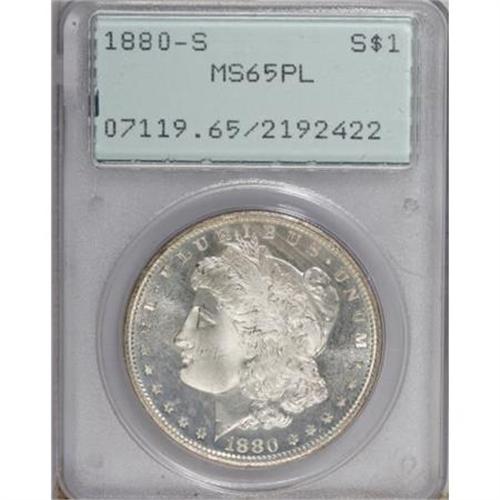 <B>1880-S $1 MS65 Prooflike PCGS.</B></I> PCGS Population (2363/774). NGC Census: (1808/845). Numismedia Wsl. Price for NGC/PCGS coin in MS65: $200. (#7119)<BR><BR><B>Coin Engraver:</B> George T. Morgan<BR><BR><b>Shipping:</b> Coins & Currency (<a target="_blank" href="http://www.heritageauctions.com/common/shipping.php">view shipping information</a>)