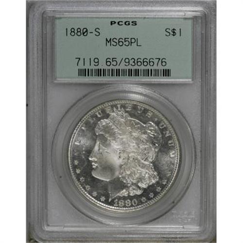 <B>1880-S $1 MS65 Prooflike PCGS.</B></I> PCGS Population (2370/778). NGC Census: (1823/857). Numismedia Wsl. Price for NGC/PCGS coin in MS65: $210. (#7119)<BR><BR><B>Coin Engraver:</B> George T. Morgan<BR><BR><b>Shipping:</b> Coins & Currency (<a target="_blank" href="http://www.heritageauctions.com/common/shipping.php">view shipping information</a>)
