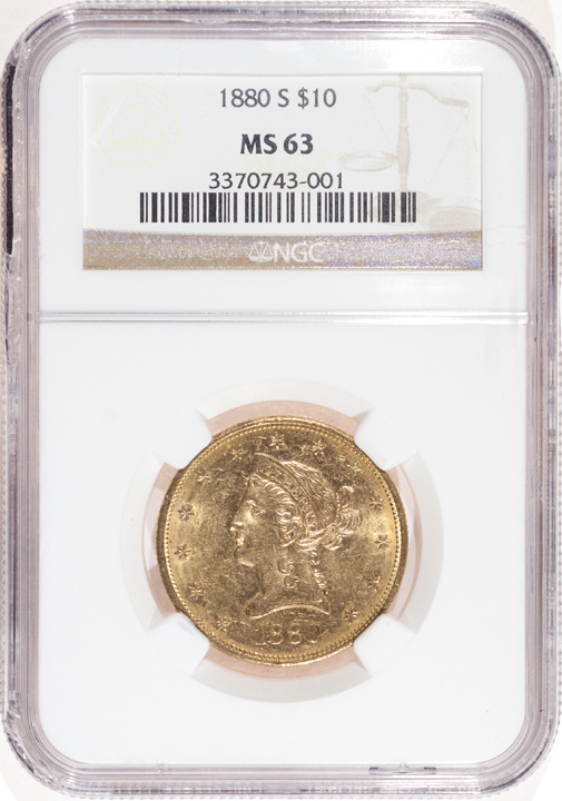 1880-S $10 Gold Eagle. NGC graded Mint State-63.