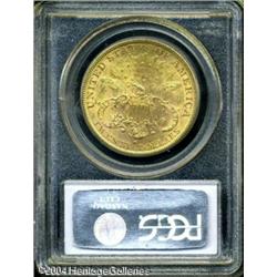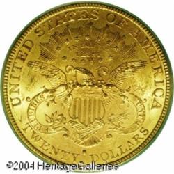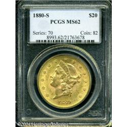 1880-S $20 MS62 PCGS. A scarce Type Three Twenty t <B>1880-S $20 MS62 PCGS.</B></I> A scarce Type Three Twenty that is much more challenging in Mint condition than its mintage would indicate. There are only a couple of handfuls of average quality Mint State pieces known, and in better condition this date becomes very rare. This is a fully struck coin that has excellent luster and numerous small abrasions on each side which account for its grade. Population: 48 in 62, 4 finer (11/04). <BR><BR><B>Important notice:</B> Heritage usually auctions material at the rate of 200-250 lots per hour. On some occasions eBay Live bid software or the Internet may not be able to keep up with the pace of the auction. We recommend placing a realistic absentee bid now as insurance to avoid disappointment. Occasionally the auctioneer may eliminate or reject an eBay Live bid, and the auctioneer may also reopen a lot after the close of the eBay live bidding (usually because we missed an audience bid), and may reject your bid even if it shows you as the winning bidder. By bidding via eBay Live, you agree that Heritage may award the lot to another bidder at its sole discretion under the circumstances described above or any other reasonable circumstances. Since eBay bids are not shown to us until we open the lot on the floor, we treat those bids just like floor bids. In most cases the floor responds before the eBay bid is presented to us, due to Internet lag time, so for consistency we have made it a policy that floor bids are always considered first over tie eBay live bids. Also please note that all Heritage lots purchased through eBay Live carry a 20% Buyer's Premium. Please make sure you read the Terms and Conditions before you bid. This lot is being auctioned in conjunction with a live floor auction by Heritage Galleries & Auctioneers. All final auction and invoice information will be supplied by Heritage Galleries & Auctioneers, and all other information should be considered preliminary. Lot:6920