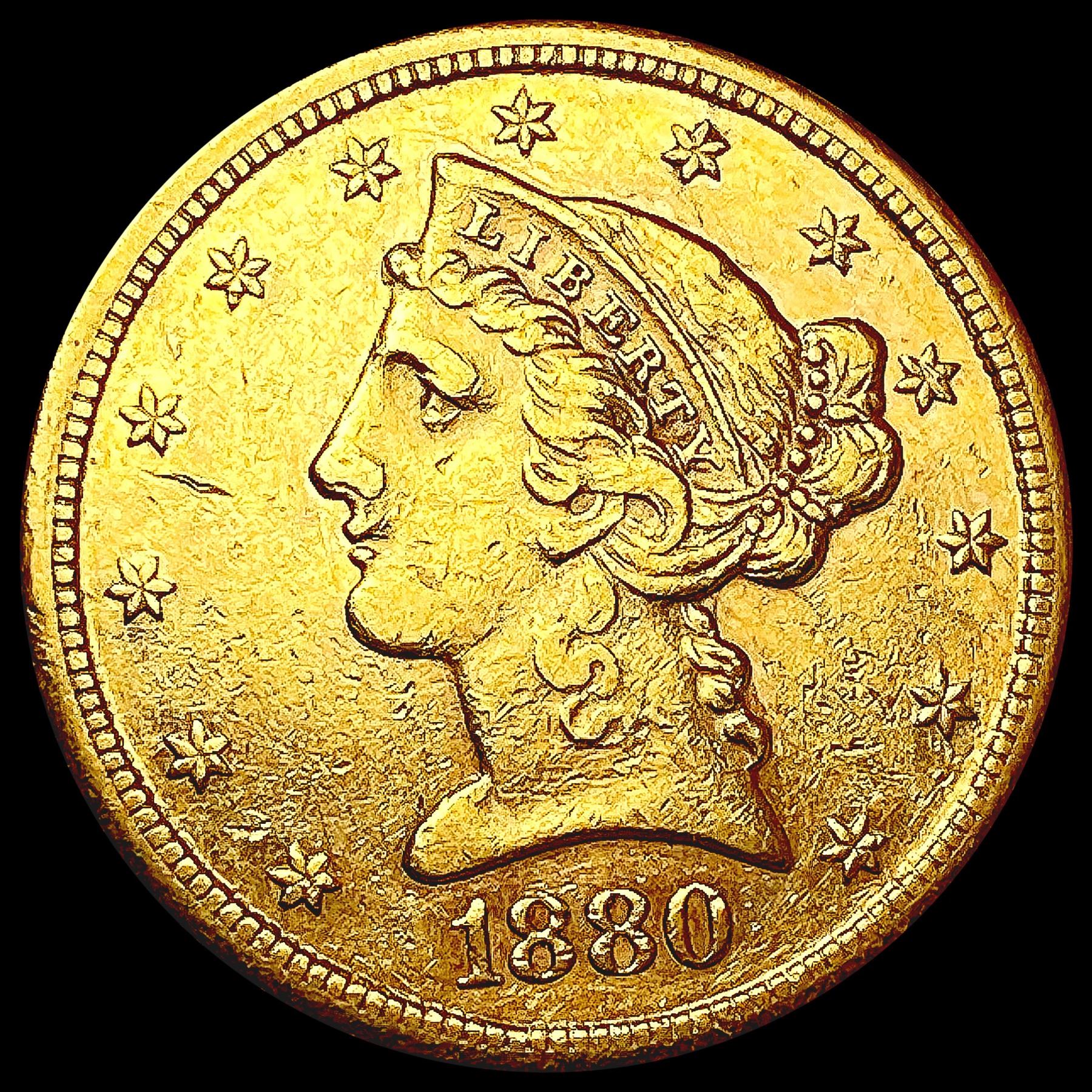 1880-S $5 Gold Half Eagle CLOSELY UNCIRCULATED