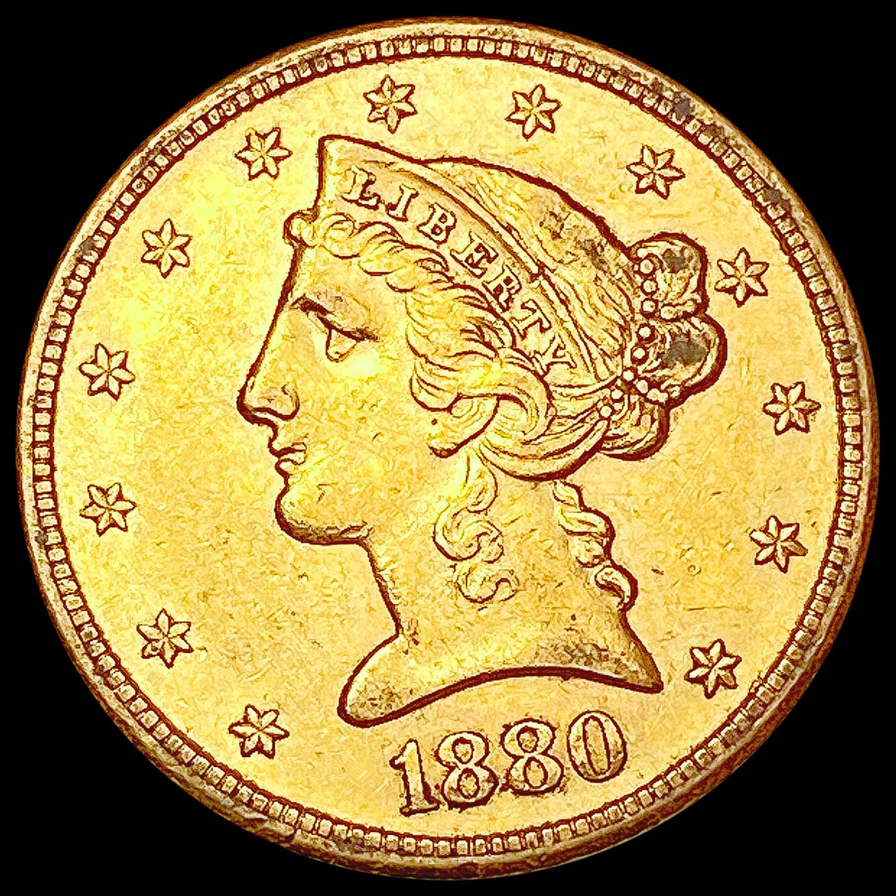 1880-S $5 Gold Half Eagle CLOSELY UNCIRCULATED