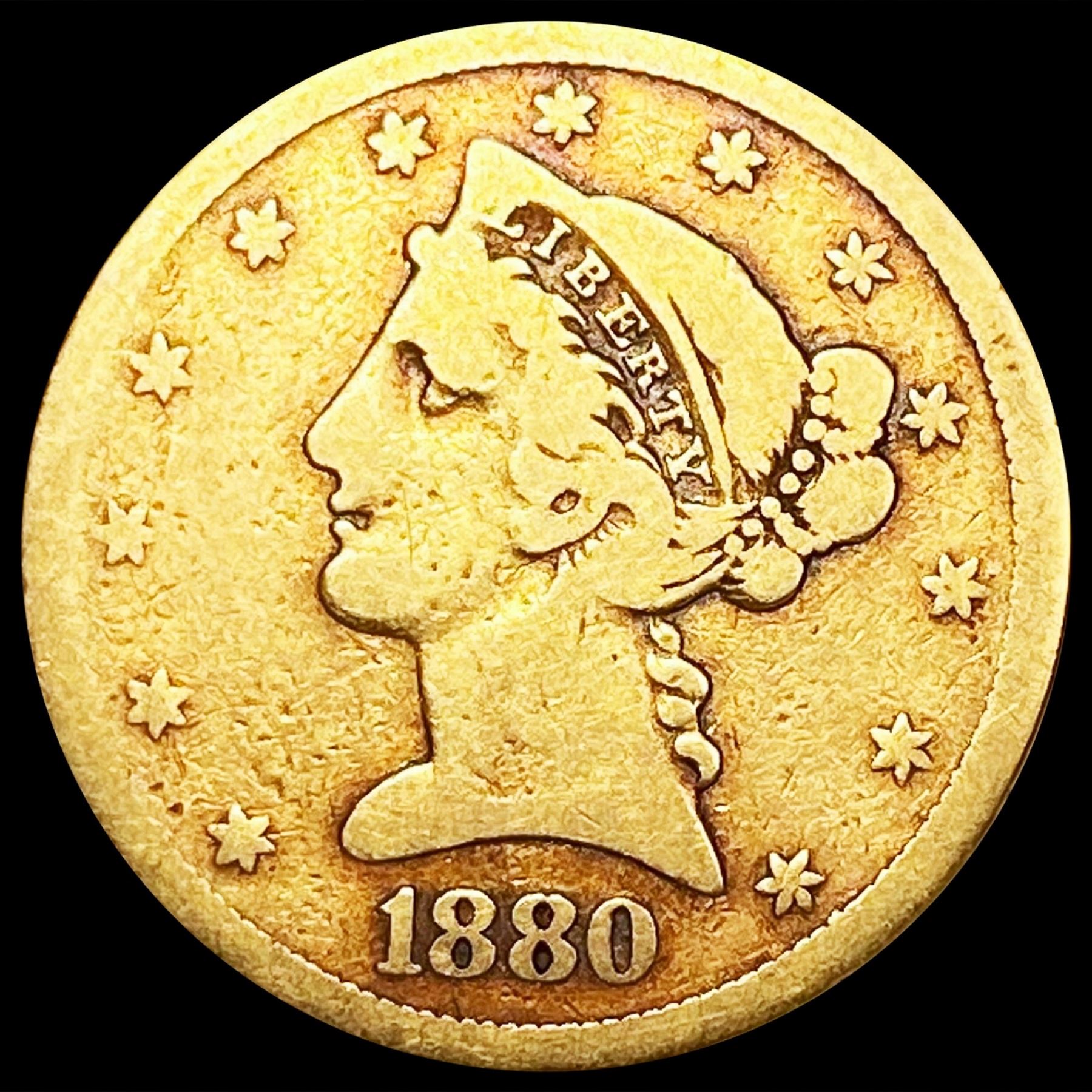 1880-S $5 Gold Half Eagle NICELY CIRCULATED