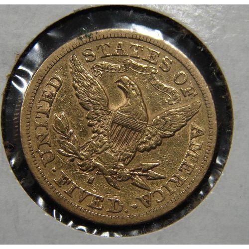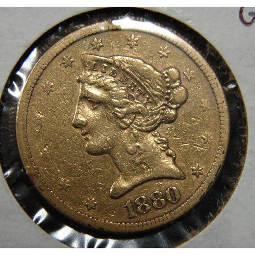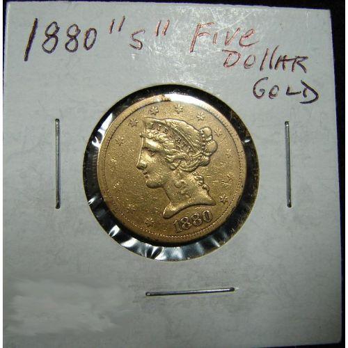 1880-S $5 U.S. LIBERTY GOLD COIN.