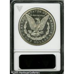 <B>1880-S<img border='0' src='http://www.heritagecoins.com/images/star.gif' width=10 height=10>$1 8 Over 7 MS65 Deep Mirror Prooflike ANACS.</B></I> VAM-8. A Top 100 Variety. Medium S. The fields are incredibly deep and the devices reveal ample frost. The surfaces remain mostly untoned except for the darker patina that is present around the edges. Lot:10012