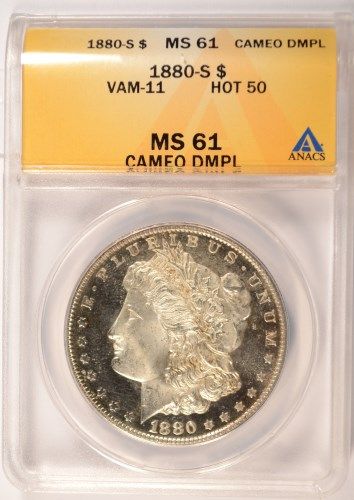 1880-S MORGAN DOLLAR ANACS MS61 CAMEO DPL, VAM-11 HOT 50 RARE! SUPER LOOK