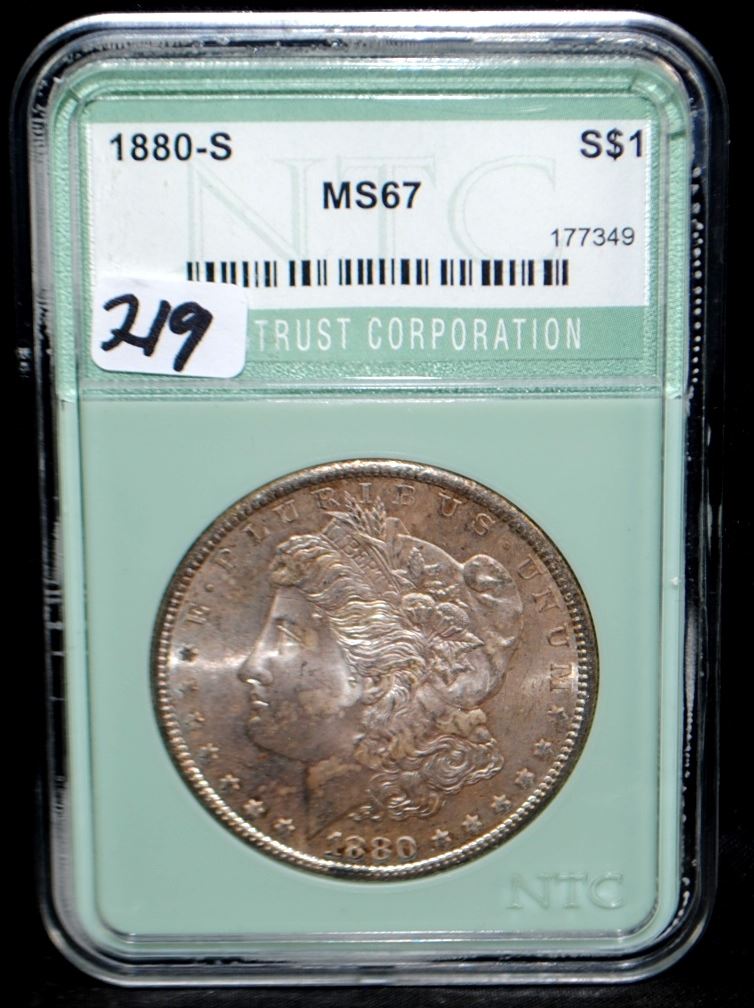 1880-S MORGAN DOLLAR - NTC MS67 (PCGS PRICE GUIDE LISTS AN MS67 @ $850.00)